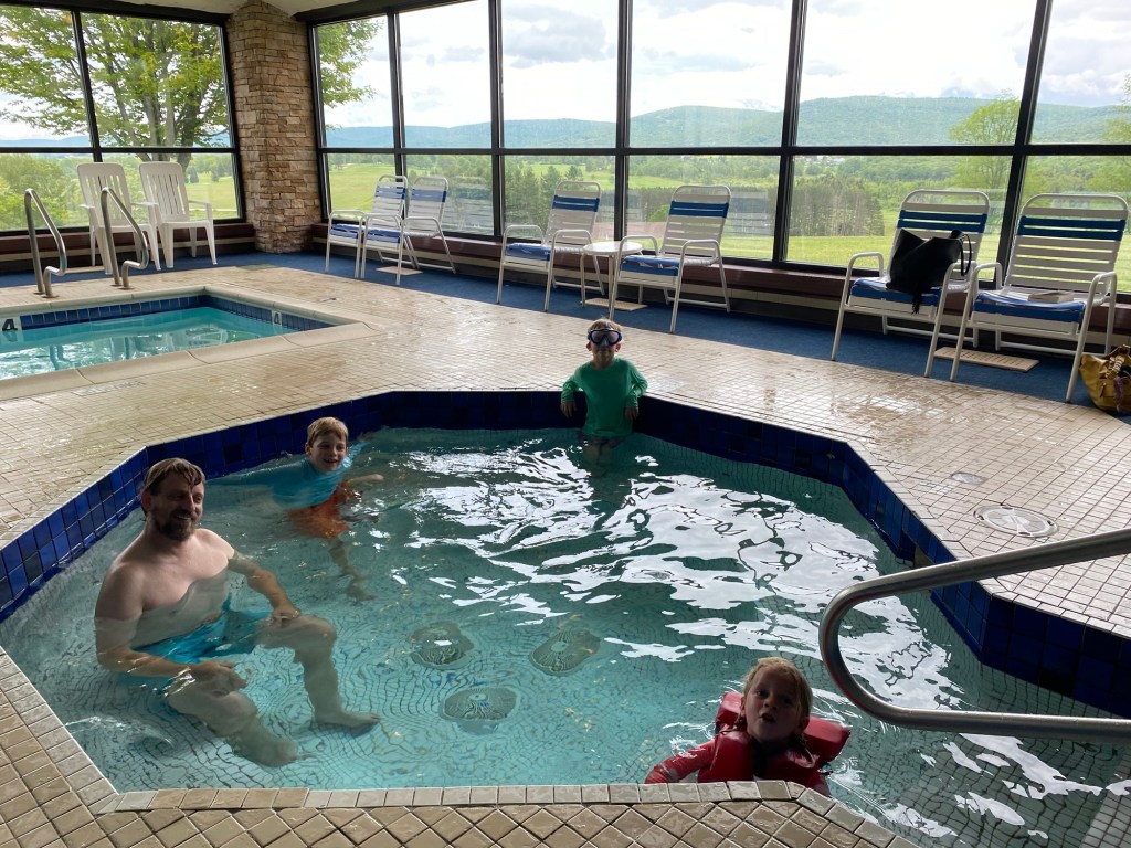With the rain and storms predicted throughout the day, Amy worked her magic and found us a camping spot at Canaan Valley State Park. A state park complete with an indoor pool and hot tub, Unicorn State Park. We got laundry done while we swam, and when the sun poked out we biked.