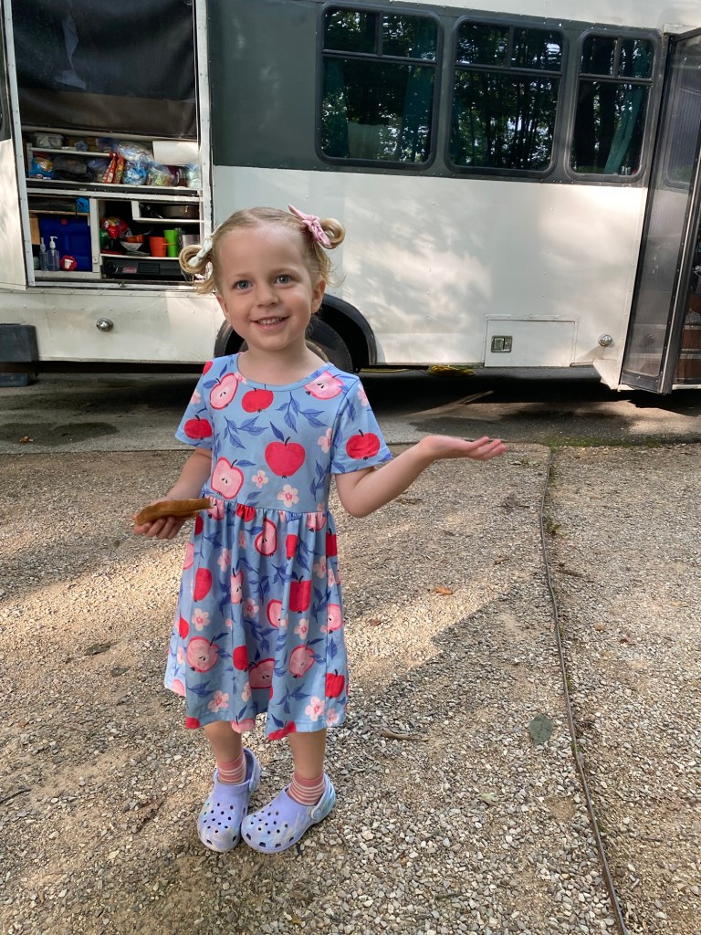 We need a laundry and resupply day bad, so we used our open day to find a KOA on our route with a laundry machine, a pool, and a neighboring Mexican restaurant. Spent the evening of Father’s Day sharing fajitas as a family and cuddling up in the bus to watch a movie on the projector
