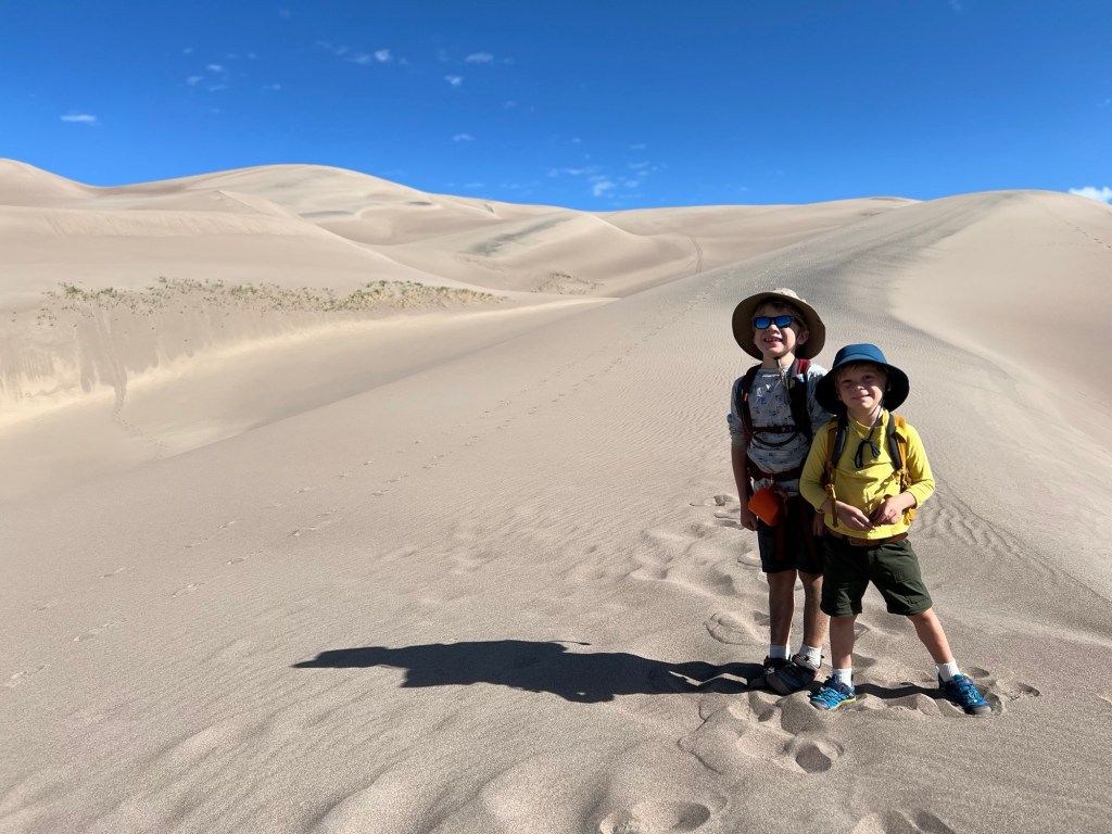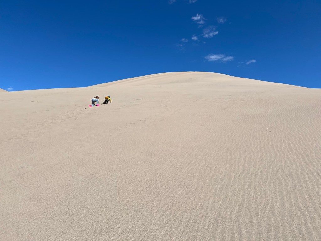 Also in stark contrast to our last visit, Everest and Fitz were cruising up the dunes often waiting for us to crawl up to them. From the moment we arrived they were chomping at the bit to scale the dunes, I had to hold them back while we anxiously waited for our cousin and uncle to arrive and join us!