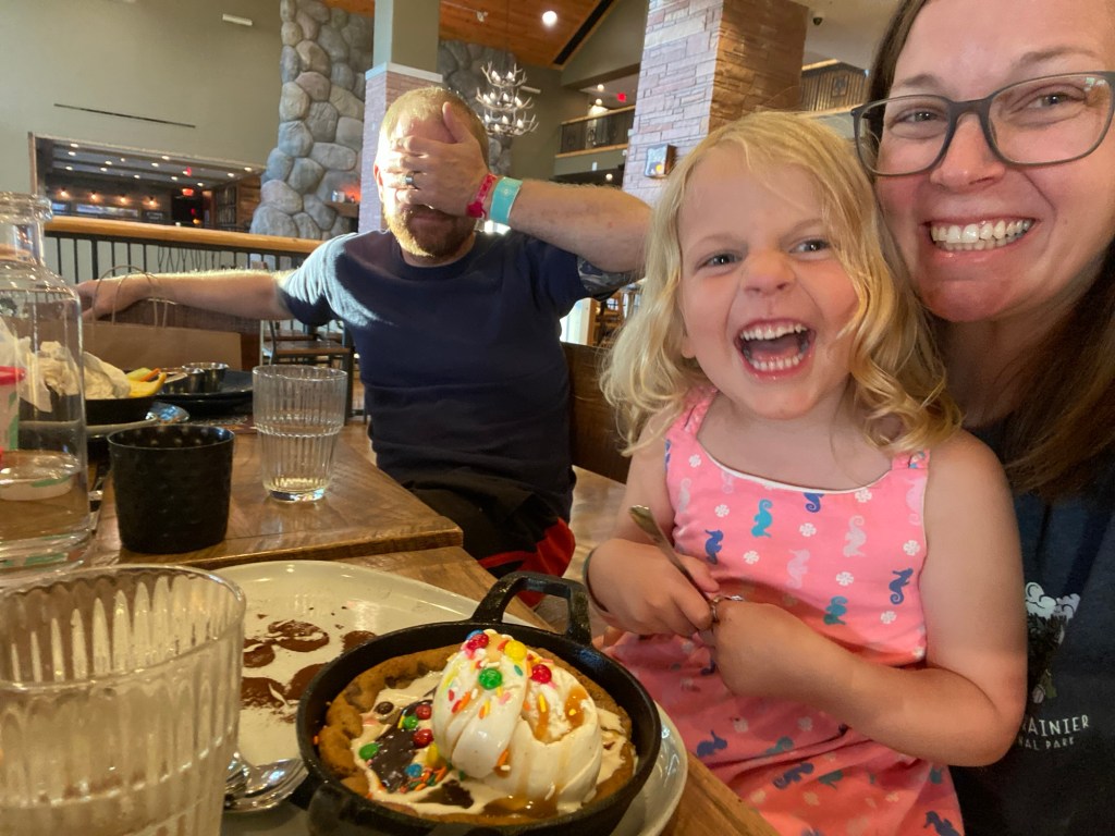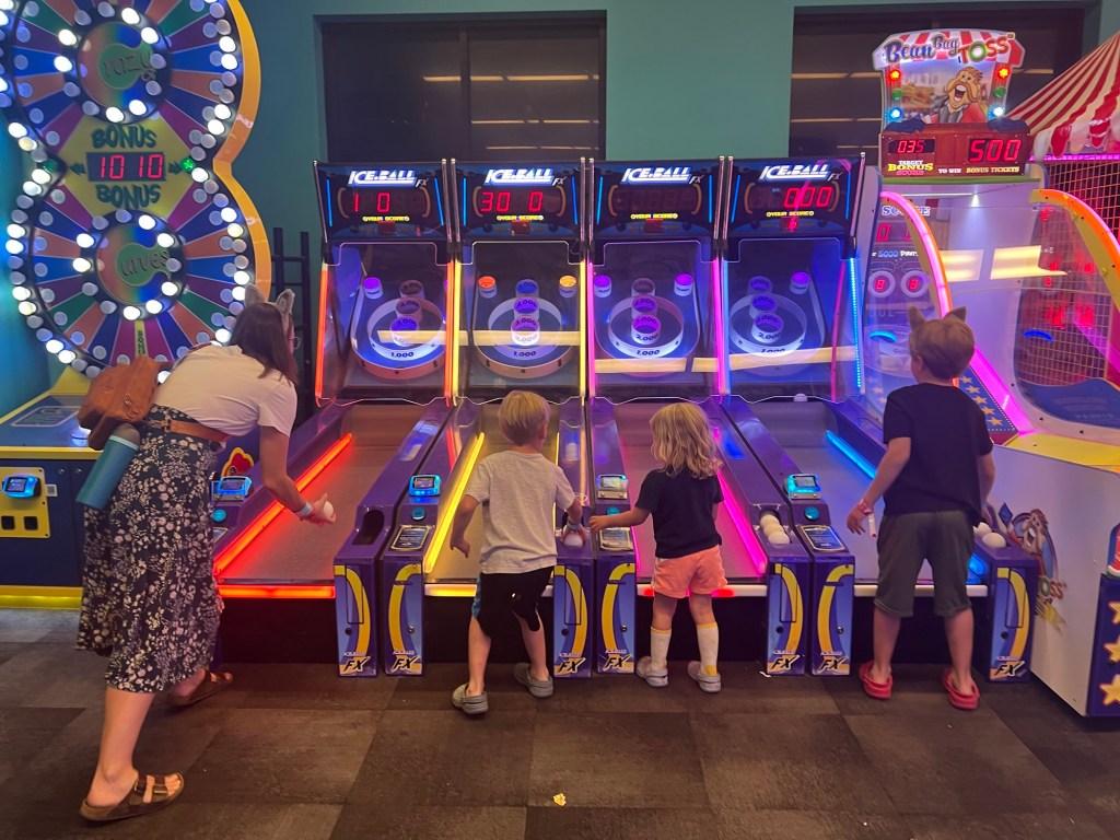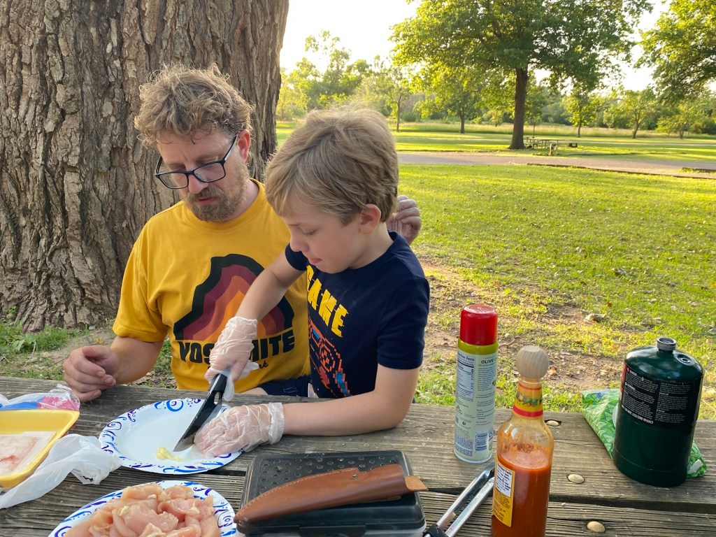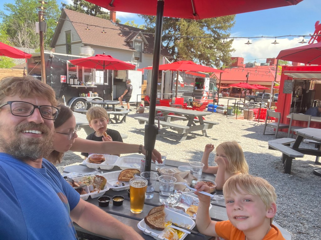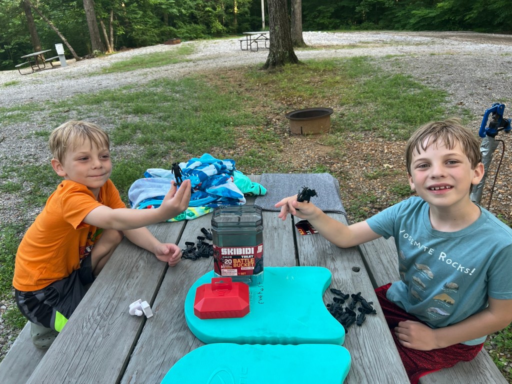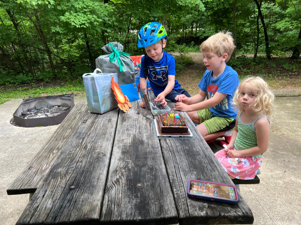 Grandmas Neighborhood threw a 4th of July Slip ‘n Slide party You can feed the Giraffes at the Cheyenne Mountain ZooGreat wolf lodge with the cousins Birthday DessertAnother Birthday DessertMom pointing out some of the finer points to the game The temperature got so hot at the sand dunes that the bus sank into the asphalt We try to include the kids in all the daily aspects of camping A fun unexpected sign when you pull up to your campsite Proud of the big guyHis eighth birthday camping Chocolate cake for breakfast Everest found what I think is a Luna Moth Caterpillar at the playground. Will wait to hear from Cara Huerbin to confirm!Fit is Proud to hang the sign he made at each campsite. That’s Mew in the top left. You try to raise them right, learn how to be responsible with money. First purchase with his own personal birthday money was…. The Skibidi Toilet figurine collection. If you don’t have fun playing with heads poking out of toilets you’ll be sure to have fun keeping track of twenty new small toys every time you pack up the bus. Some BBQ Food Truck for Lunch where I am writing this in Lyon Colorado on our way to Rocky Mountain National Park