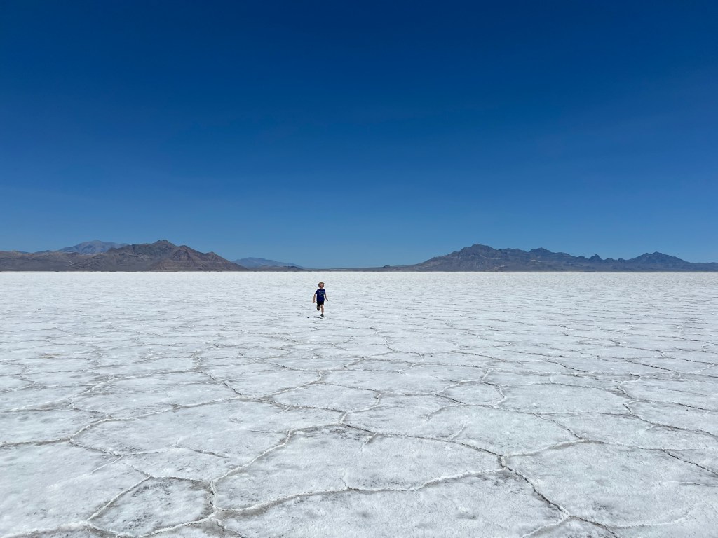 Yesterday, she got all giddy when I told her we are going to arrive at the salt flats today. A small surprise I’ve been hiding. She immediately took out her North American geology book and reread all the pertinent parts, pausing every paragraph to explain how amazing it all is.