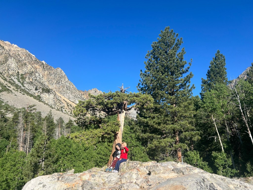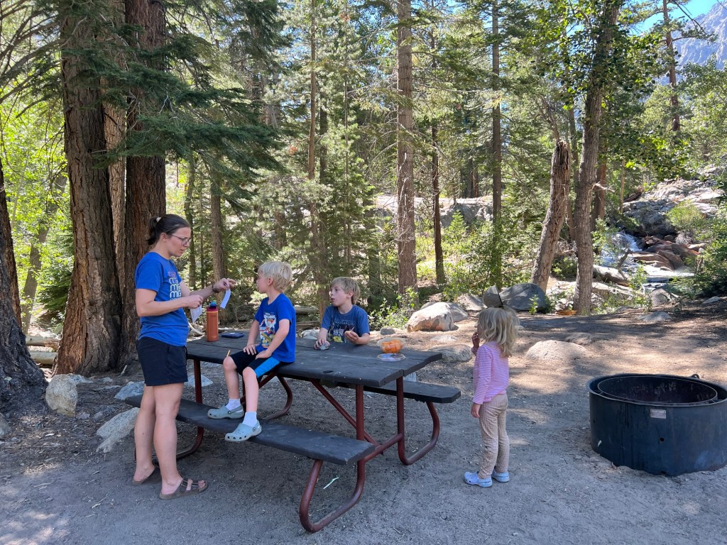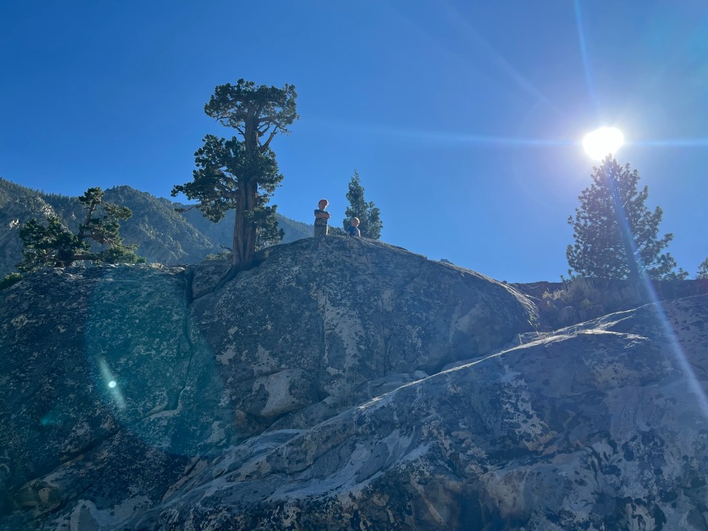We found a forest service campsite that was first come first serve right along some rapids downstream from a small waterfall. You couldn’t even hear your kids yelling. We found some short hikes nearby that led to some scrambling up huge granite slabs, a signal that we have reached the edge of the Sierras.