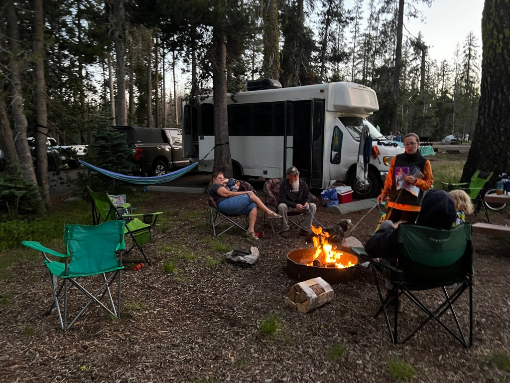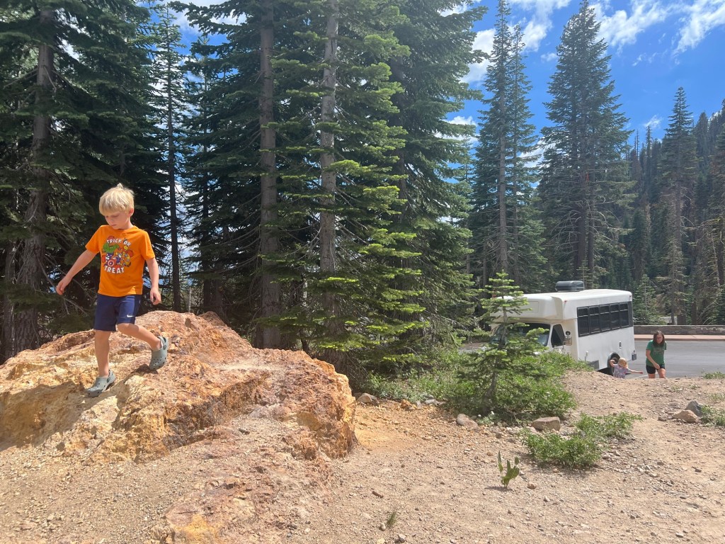 This year we got to stay with my childhood friend and the grandparents who joined us for the past four nights on the road. We hiked the Bumpass Hell Trail, saw a few other sites, visited the visitor center, and otherwise relaxed in forested cell phone dead-zone heaven.