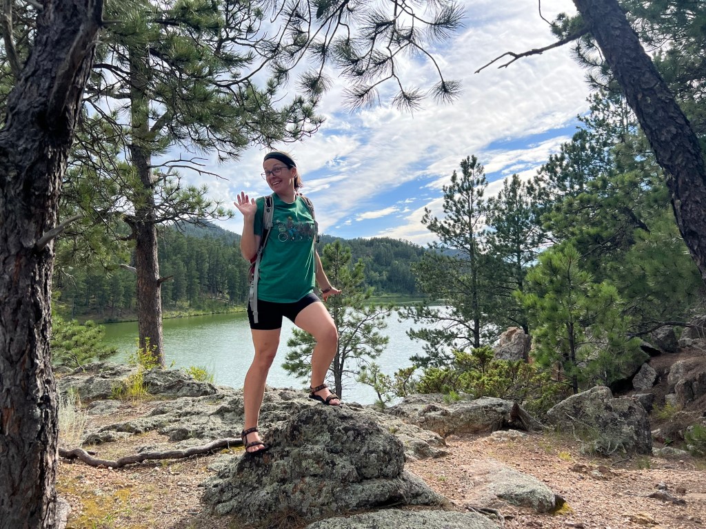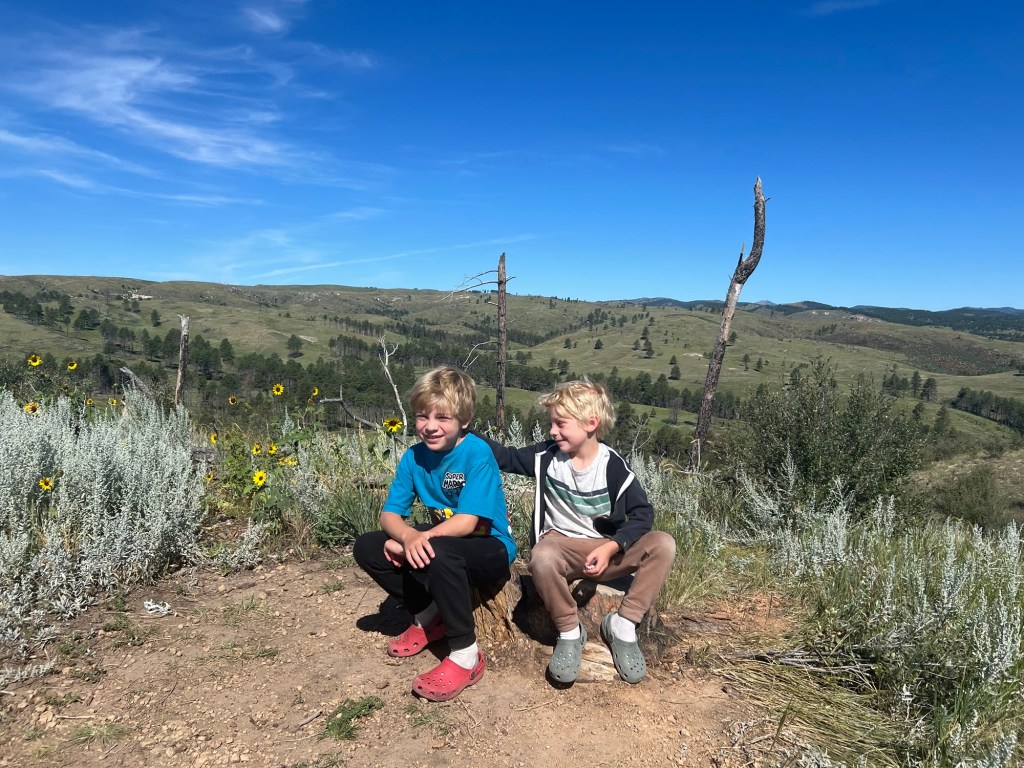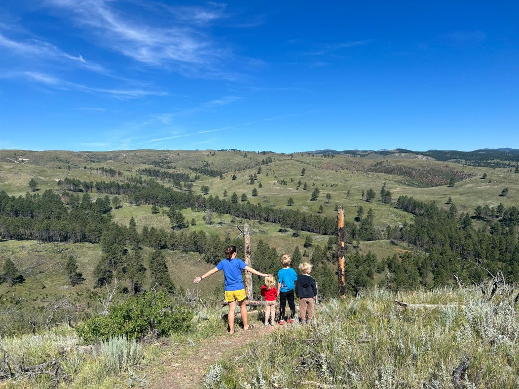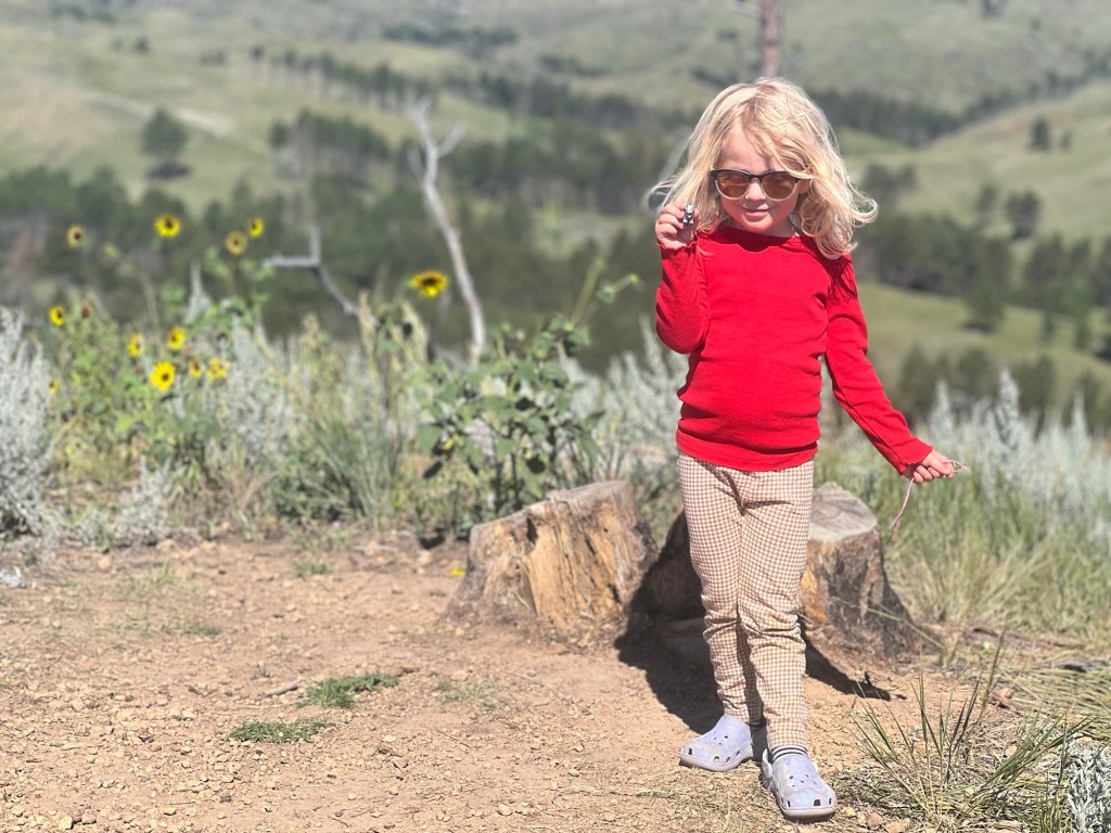 Our stay in Custer will be cut in half by the decision we made to recover at a motel in Lander, Wyoming. We swing by the town of Custer on the way in for some pie at a local staple. We soon realize that we have arrived during the height of the Sturgis bike rally and we will find ourselves surrounded by motorcycle campers for the next few days. We made camp along Stockade lake at a beautiful large forested site overlooking a field complete with a playground, might as well be free babysitting. We decided to hike and explored the lakeshore near our camp, we didn’t get far fast because of the unlimited ripe fresh raspberries lining the trail. We spent the majority of our day lounging around, alternating between reading and writing and playing.