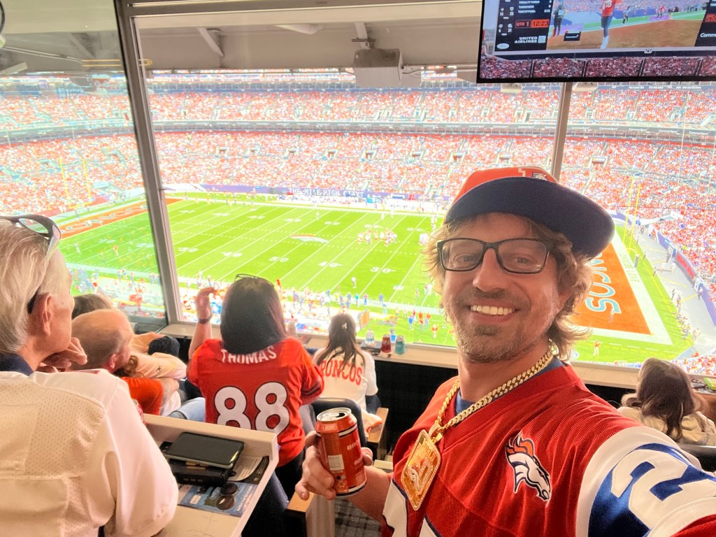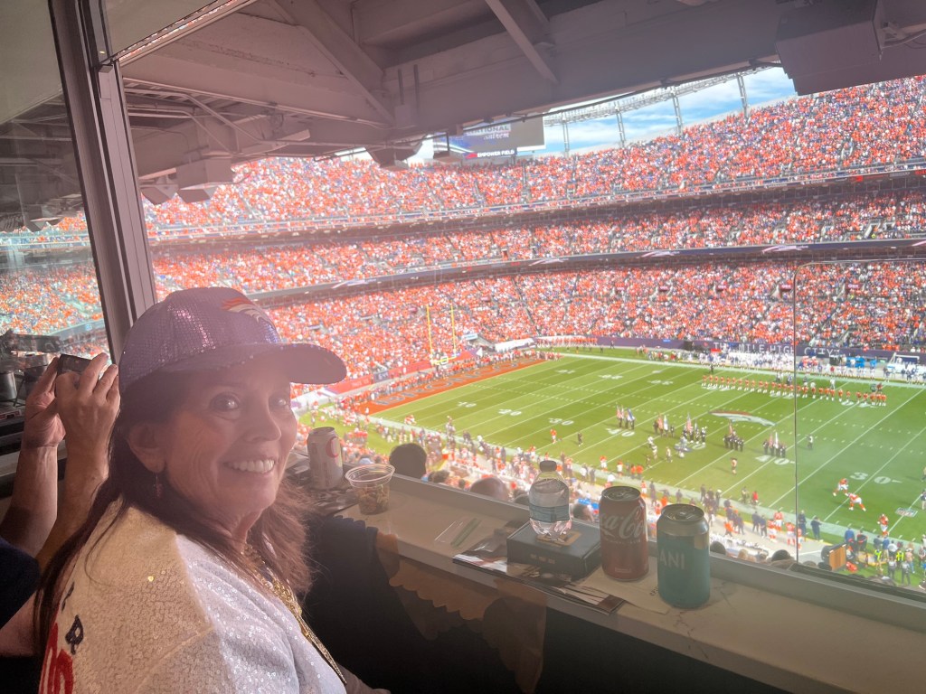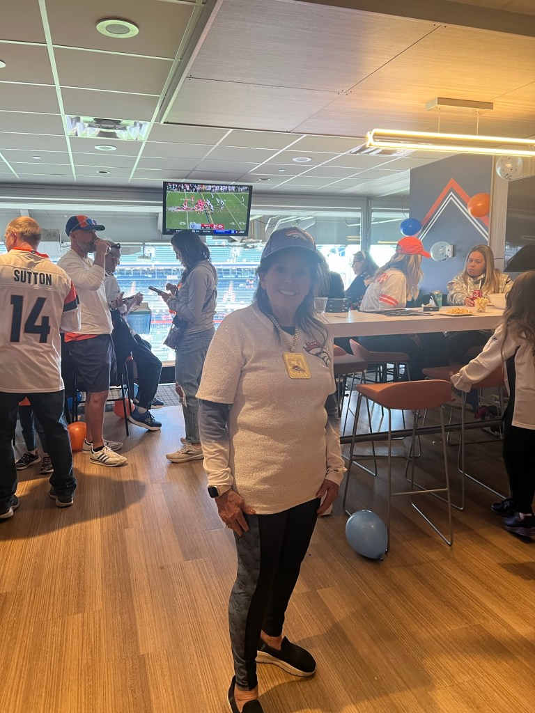 In truth, I knew that I hadn’t traveled east just to watch a game but rather celebrate my amazing mother turning 78. I knew that even though the game was going down as one of the most embarrassing beatdowns in Broncos history, I still got to celebrate with my mom and experience a home game in a way that few people ever get to. My mother decided that for her big day she wanted to treat all the people in her life to a once in a lifetime experience; game day in a private box suite on the fifty yard line, complete with all the luxuries and catered food/drink you could imagine. Even with a loss, the day that would turn out to be memorable in more ways than one.