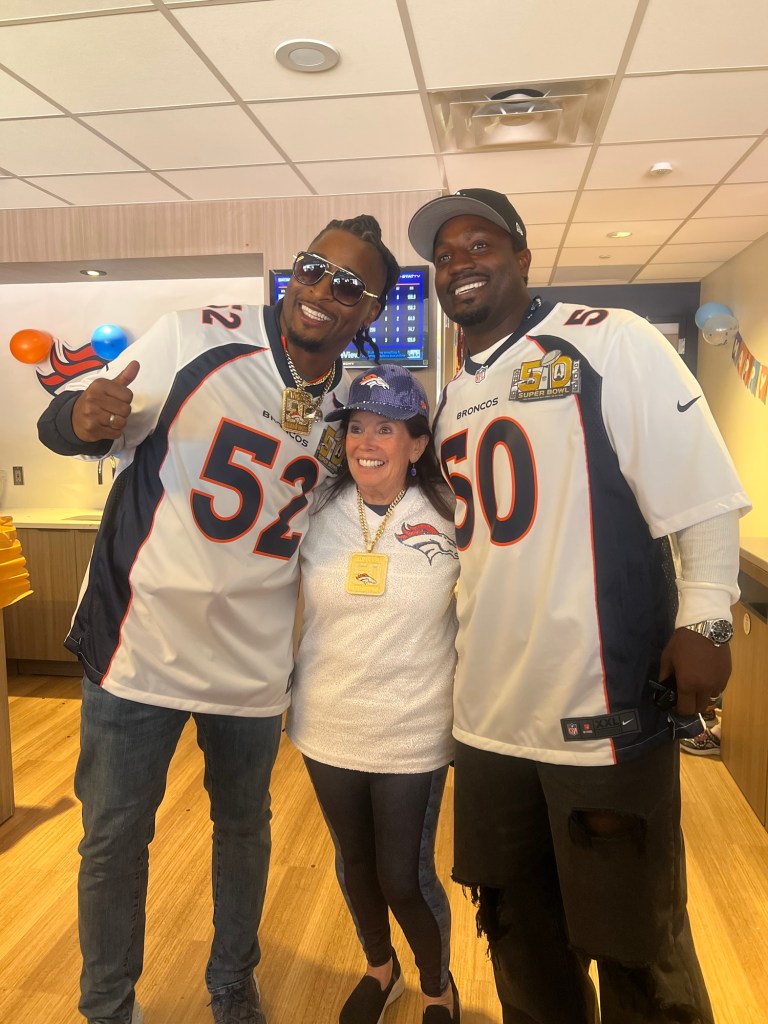As the game was winding down, a couple ex Broncos players came by to wish my mom happy birthday. Looking at the score and the clock, this would surely be the highlight of the day.