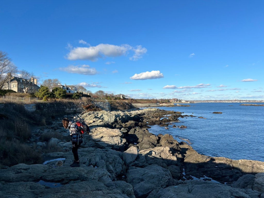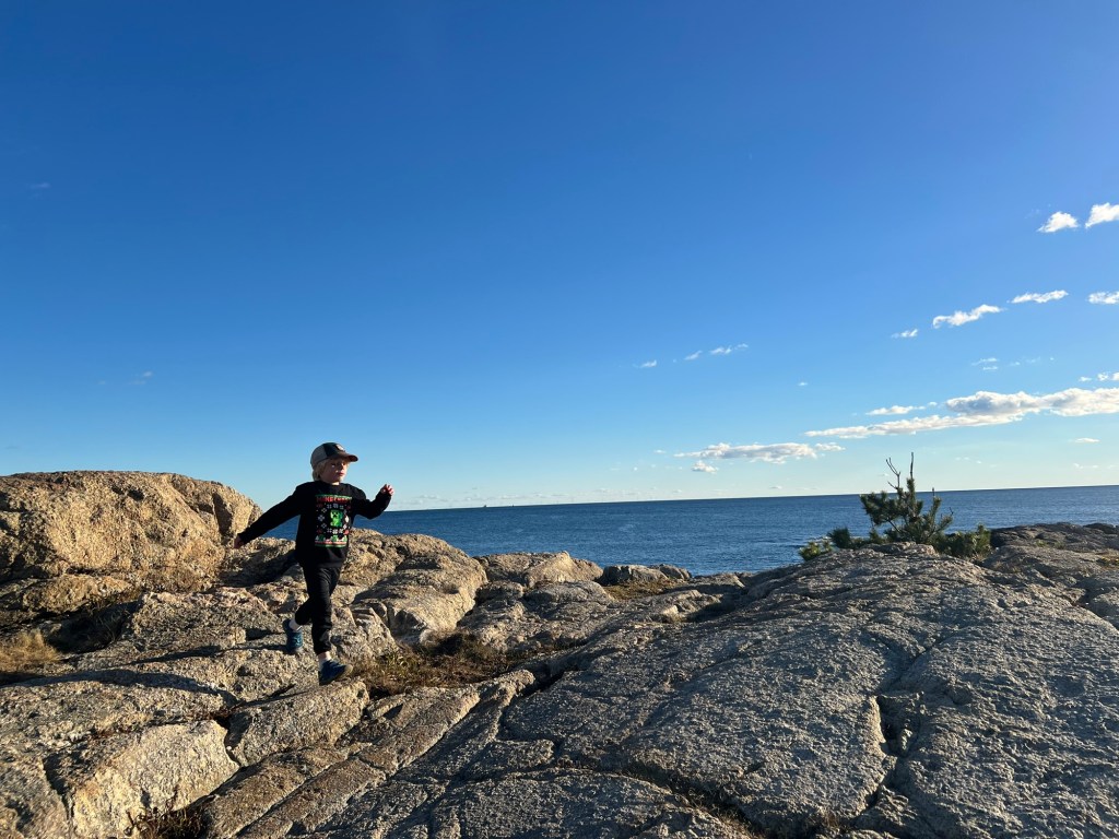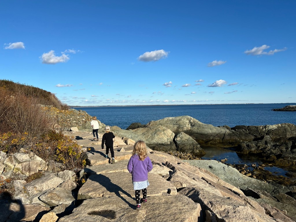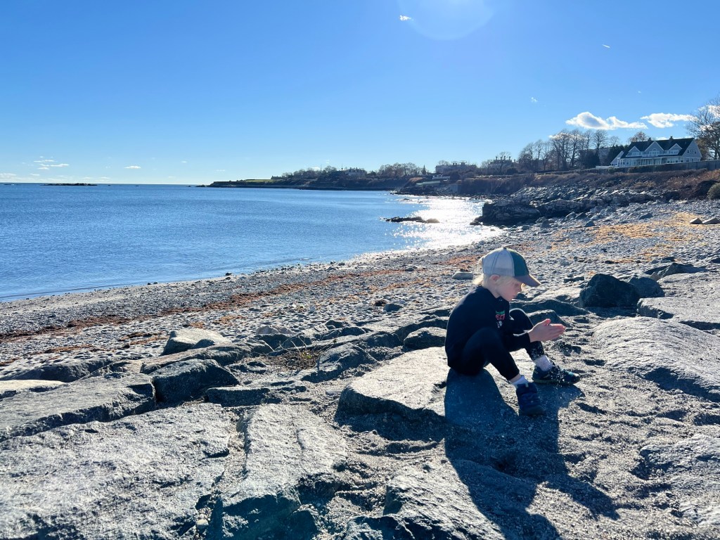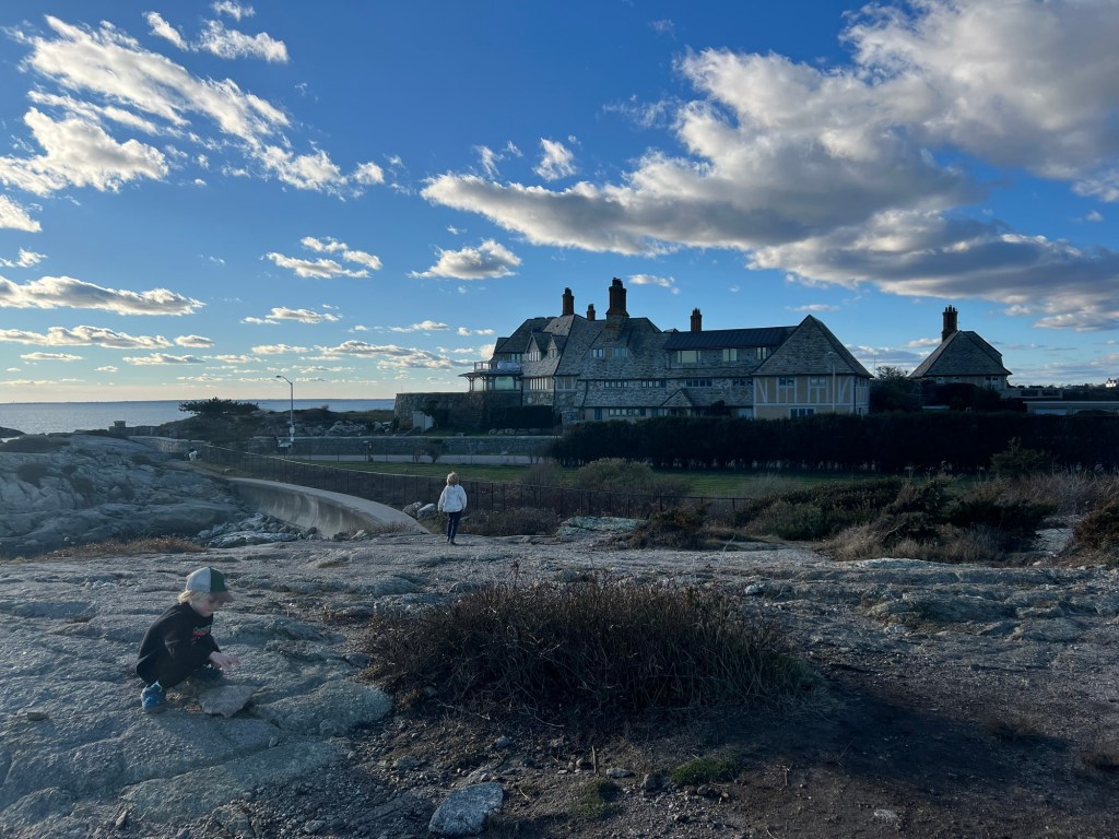 We started our trip with the famed Newport Cliff Walk which is equally eye opening for both its natural stunning ocean views to the left and its man made architectural wonders to your right. The 3.5 mile hike begins along a paved bike path but soon turns to a moderately challenging rock scramble and sandy shores. I was very nervous judging by the number of people passing by who saw our children and told us we would soon need to turn back. Luckily nothing was dangerous and Maple found her way easily with little assistance and the boys found it fun, having to be recalled and corralled constantly.