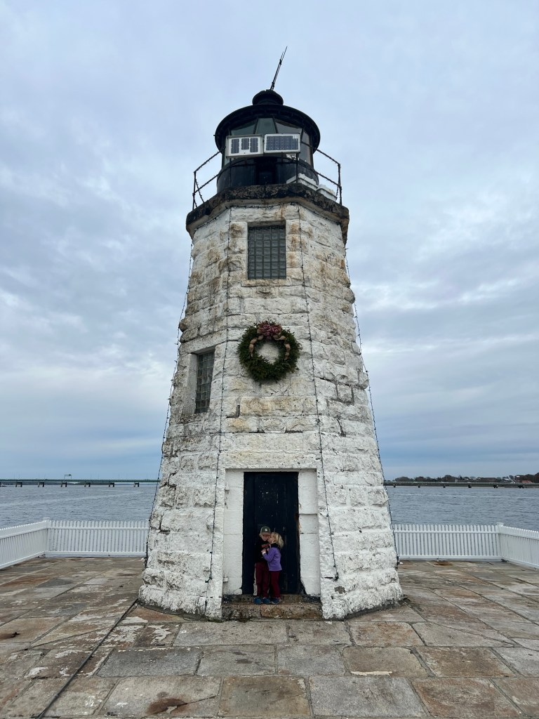 In the morning, I got up early with Fitz and Maple and we found ourselves walking out over a bridge to Goat Island to a light house we could see from our hotel.