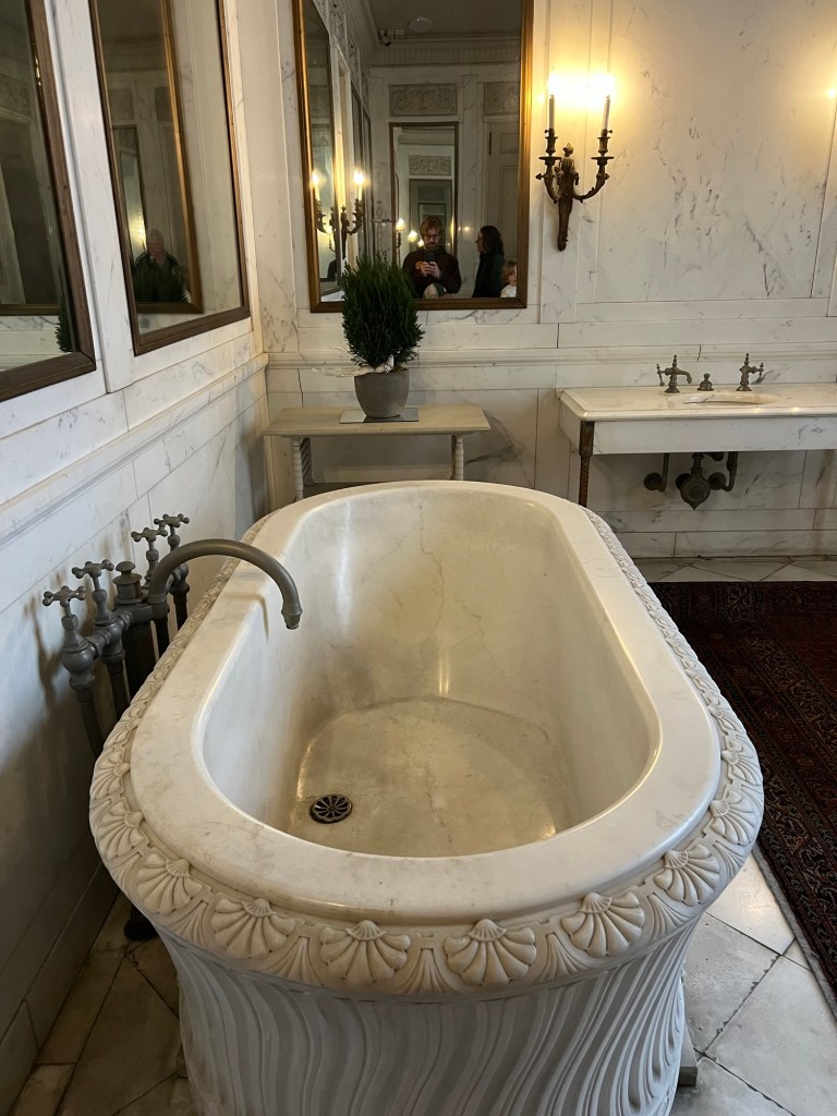 After listening to Anderson Cooper’s book about the history of his family, The Vanderbilt’s, during our drive, we were excited to tour The Breakers, one of the most famous mansions in America. You immediately enter into the Grand Hall which was built to remind you with its scale and wealth that this is not your mamas regular mansion. It’s difficult to imagine the insane number of servants and butlers required to maintain their lifestyle and after hearing about the family and their opulent parties, it was fun to visualize what it would have been like to be a Vanderbilt or any number of people living along this road. Although many of these mansions have become museums there are still several neighbors who actually live or “summer” in equally impressive compounds.