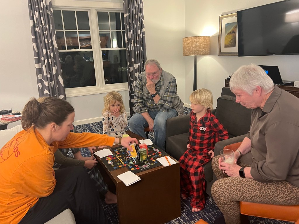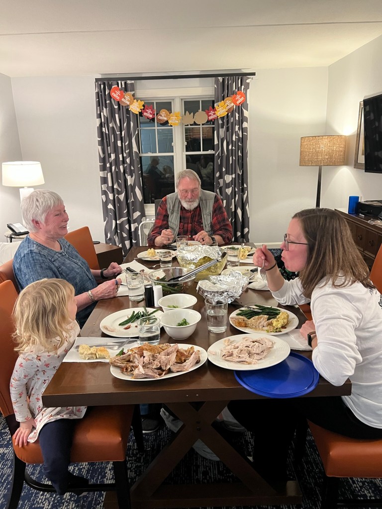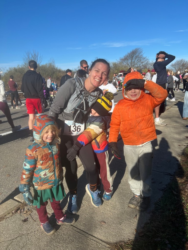 On Thanksgiving morning Amy ran in a local five mile race while we cheered on the runners from the sidelines. Whenever cooking prep allowed we played board games and Wiffleball at the park before finally enjoying our epic Thanksgiving feast made by Amy and Oma and Fitz.