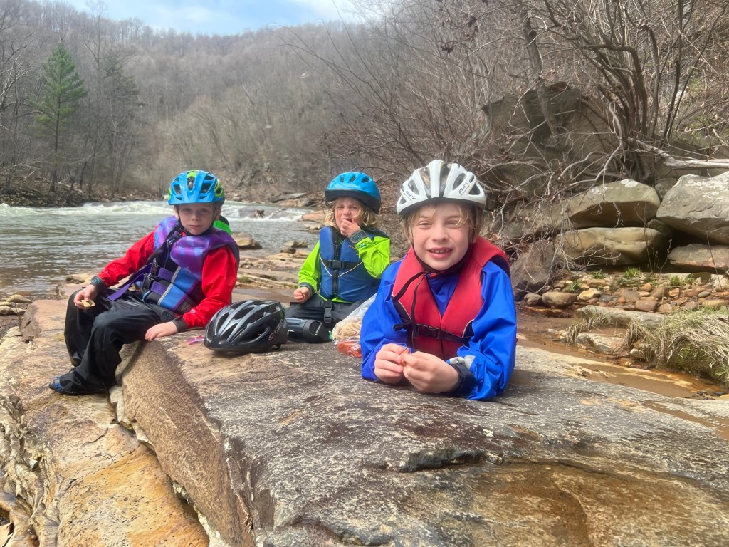 Pennsylvania is packed with beautiful state parks tucked away in scenic forests all over the state. We found the campground at Laurel Hill State Park to be the perfect getaway start to the camping season. We spent the night Friday hiking, biking, and S’moresing in our faithful bus. On Saturday we woke up ready for a new adventure, each kid somewhere on the spectrum between excited and nervous for the whitewater adventure ahead. With Fitz being on the extreme end of excited and unphased by any fear, and the more cautious Everest falling right in the middle, we excitedly met our friends near Johnstown for a rafting trip down the Stoney Creek River. Within minutes we found ourselves crashing through rapids and over rocks, our borrowed gear soaked from the more exciting rapids. Although, scared at first, by the time our lunch break at the side of some rapids ended, Maple was ready to never go on a calm lake again, the unexpectedness of the river now more her style. The trip ended with big smiles and hopes of going again soon. It was my first time being introduced to the previously hidden world of Pennsylvania whitewater rafting an I hope we performed well enough to get invited back.