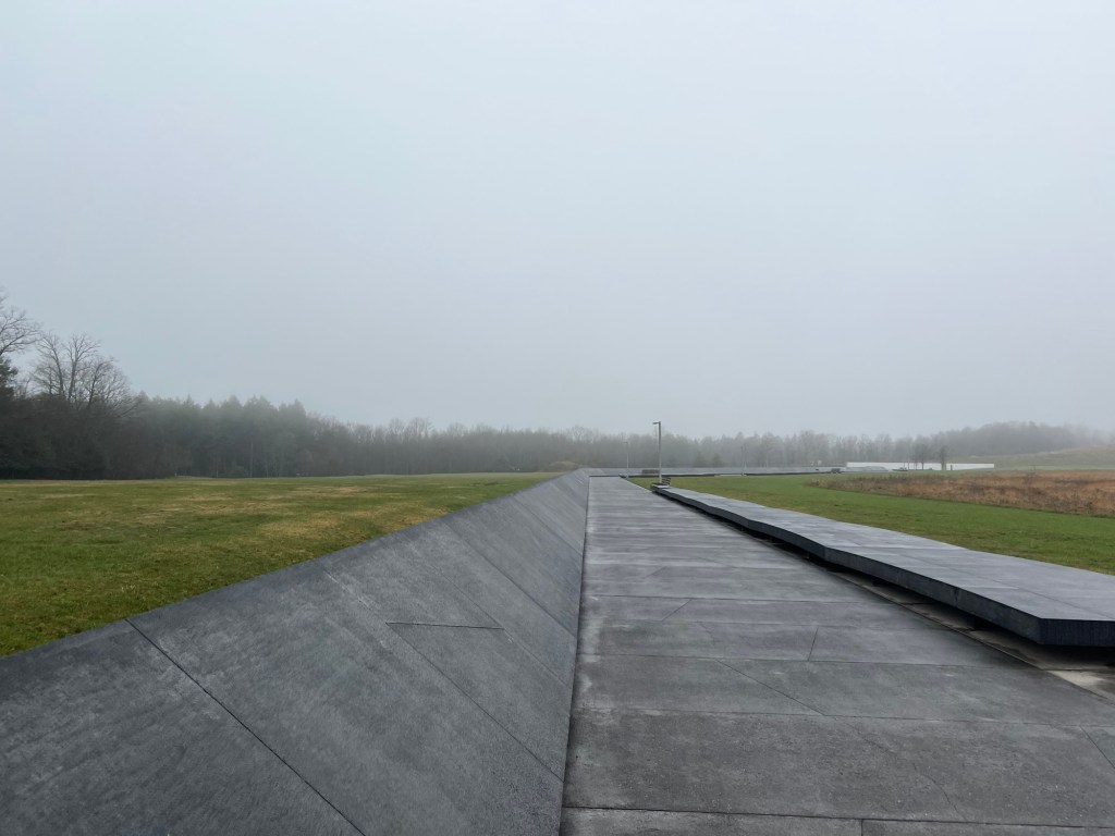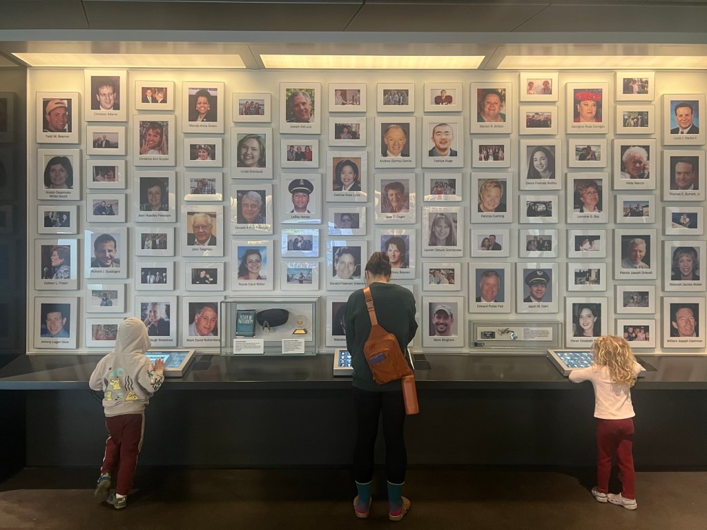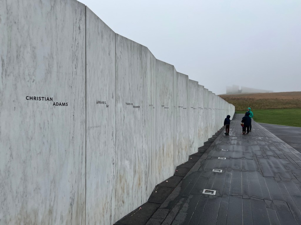 The Flight 93 Memorial pays homage to the forty hero’s who on September 11, 2001, made the choice to fight, one of the most honorable and heroic decisions in American history. Having just been hijacked by terrorists while on their way to San Francisco, the passengers of flight 93 began to contact loved ones and officials and became aware of what had recently unfolded at the Twin Towers and the Pentagon. The passengers were told that if they just remained calm that everyone would be okay. Forty strangers, looking to each other for strength decided to make stand. The museum obviously forces you to think what role and decision you would have made. The passengers knew that they would likely die trying but that even in trying they could save countless lives wherever the plane was heading. The fight that commenced is hard to contemplate, the passengers seem to have successfully overtaken the terrorists and burst into the flight cabin, the struggle lead to the terrorists’ decision to abort their plan and send the plane crashing straight down to earth over a field in Pennsylvania, a mere 20 minutes from their Washington DC destination. It’s hard to remember how chaotic and uncertain the morning was on 9/11 but the Flight 93 Memorial Museum does well tackling the difficult job of retelling the story of the day that changed us forever. One particular section that will forever leave a lasting impression on my heart was being able to listen to recordings that these hero’s left for their loved ones right before fighting back. They knew what they had to do and the likely outcome, but they still spent their last minutes letting loved ones know that they will always love them. After the museum, we walked down to the actual crash site and read the names of each legend from the Wall of Names. We then visited the tower of voices which is constructed in a way that its large wind chimes seem to sing in the breeze. It is hard to explain the importance or the events of 9/11 to our kids but I think they could see it in our faces. They knew this place was different and special. They asked many questions and we did our best to answer them.