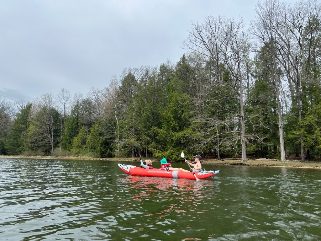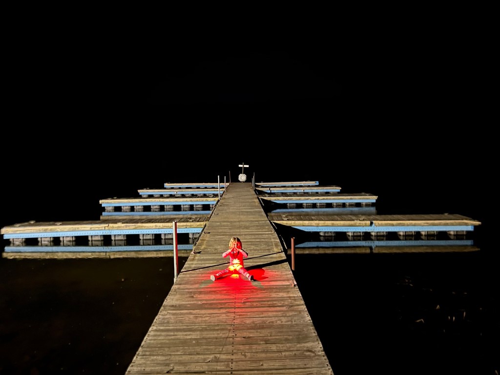 We spent the weekend camping, kayaking, hiking, and biking. The weather has been perfect but the campgrounds are empty, the best recipe for camping. We woke up early and went biking over the appropriately named “Humps and Bumps” trail, the very attraction that had the boys begging us to come back to this campground. After a long debate about whether ice cream is better before or after kayaking, the kids won and we biked over to the camp store for ice cream to recharge before paddling around the lake, we found a beaver lodge that I would revisit in the morning to check for an elusive beaver. We spent the afternoon at the beach where the youth built and played and the elderly lounged and read. The water was so cold that Amy decided to swim, as is tradition. At night I enjoyed photographing the kids as they walked along the docks. In the chilly morning, only Maple wanted to hike, and everyone else would regret this decision, we decided to walk to the beaver lodge and watched a beaver swim around and do beaver things for about fifteen minutes.